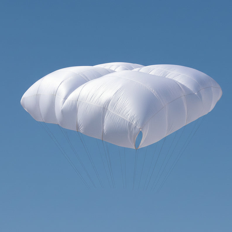 Durant le développement nous avons fait très attention à optimiser la circulation de l’air pour s’assurer que le secours descende verticalement sans dériver ni suivre de trajectoire horizontale. La forme de base du secours est carrée et tout à fait symétrique.La forme de la voilure, la procédure de pliage et le tissu ultra-light contribuent à offrir des caractéristiques d’ouvertures excellentes et meilleures que n’importe quel autre type de parachute de secours.